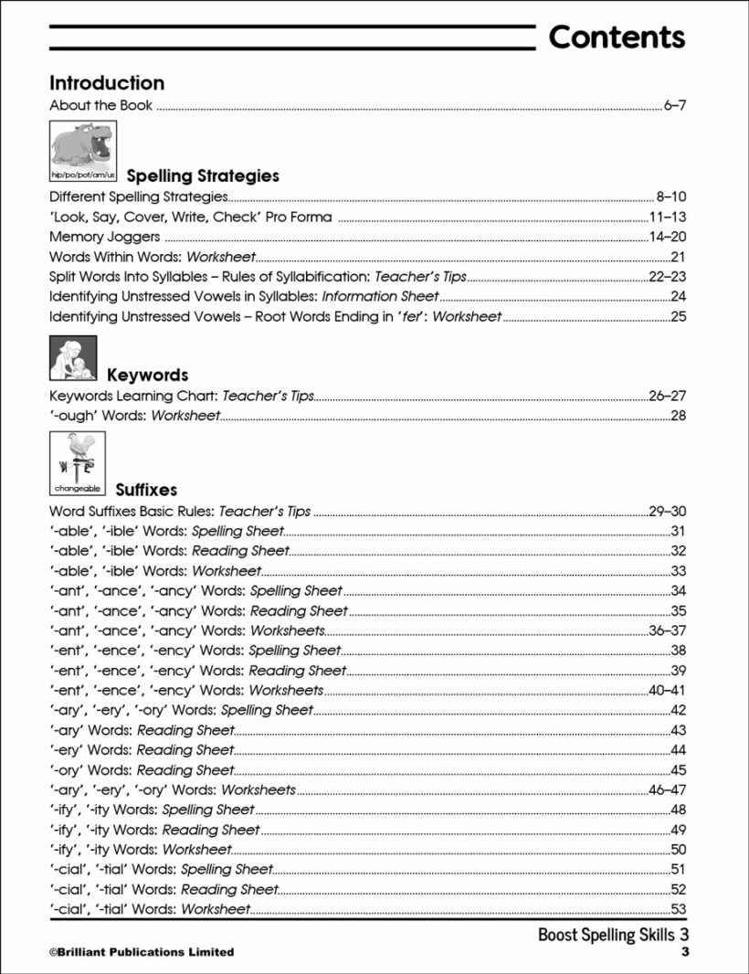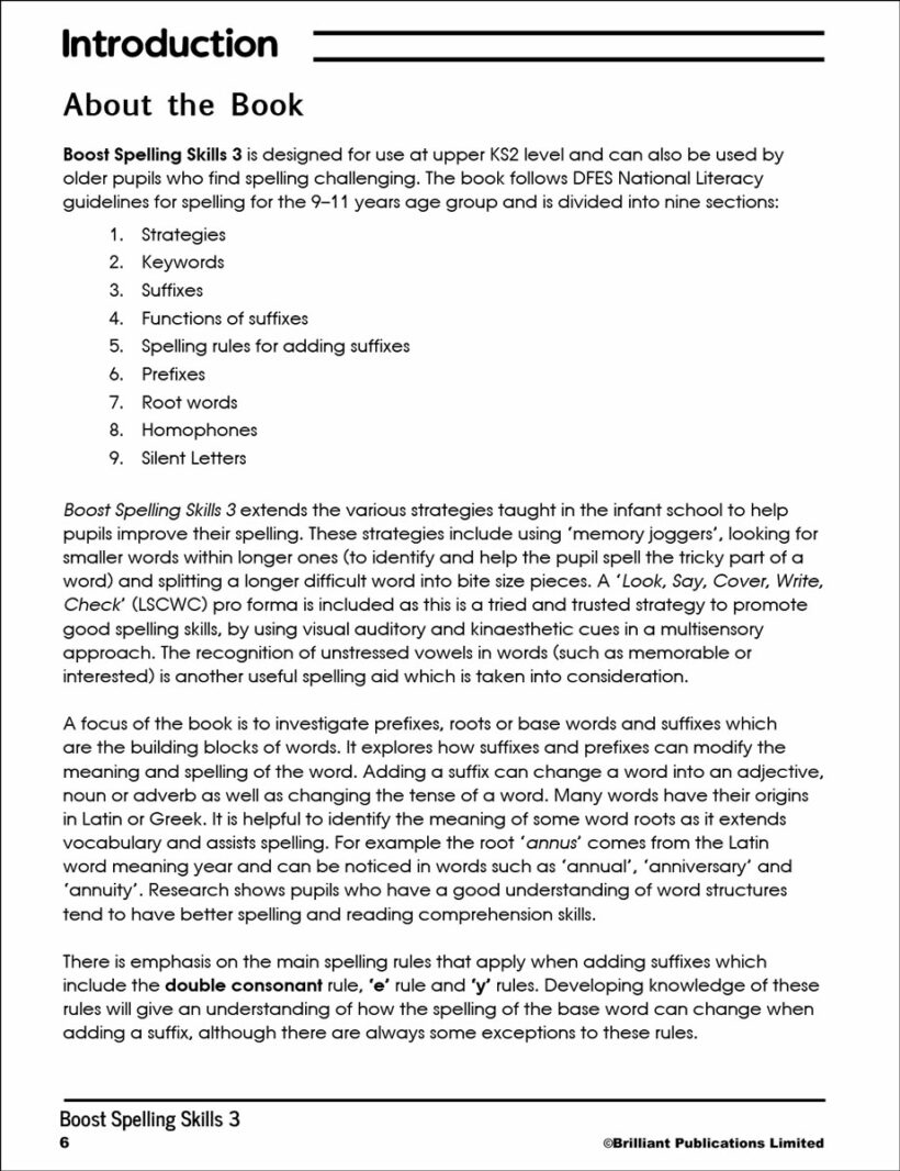 Boost Spelling Skills 3 contains strategies, tips and practise activities to help upper KS2 pupils develop and improve word pattern recognition. It is closely aligned to the statutory requirements and spelling word lists in the National Curriculum in England for Years 5 and 6.