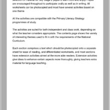 Each section comprises a text which should be reproduced onto a separate sheet for ease of reading, and differentiated worksheets, and most sections have extension activities aimed at the more able readers. Extension activities give ideas to enhance certain aspects more thoroughly, giving teachers extra material for language teaching.