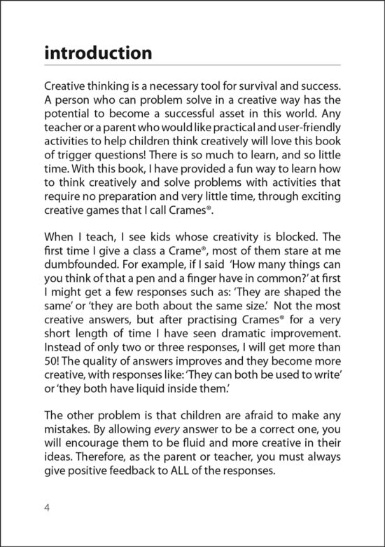 Ashley McCabe Mowat has also written Brilliant Activities for Gifted and Talented Children and CRAMES: Creative Games to Help Children Learn to Think and Problem Solve (in only 5 minutes a day!), also published by Brilliant Publications.
