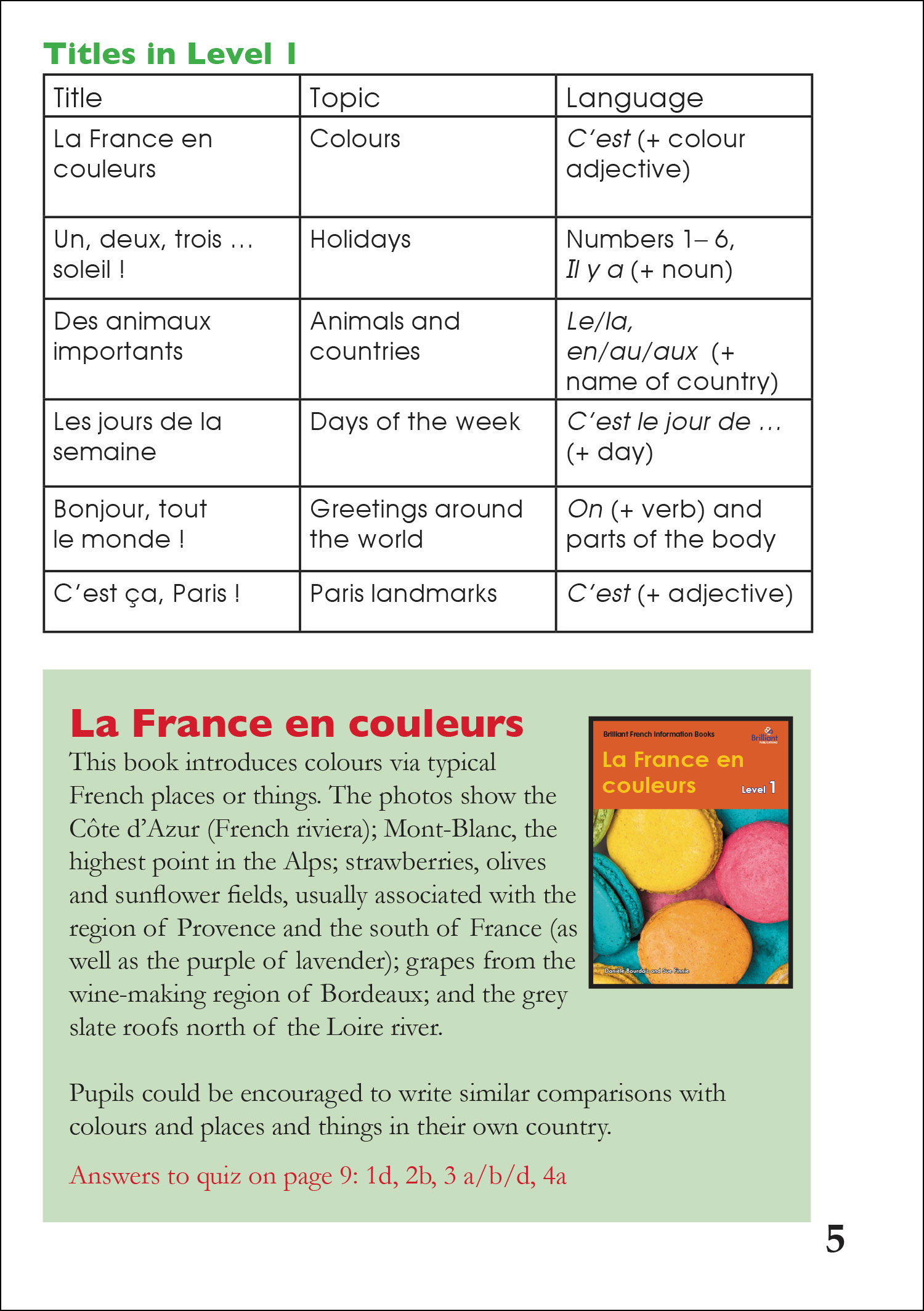 The Level 1 books are ideal for children in Years 3 and 4 who have been studying French for one or two years.