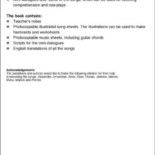 The accompanying book contains attractively illustrated lyric sheets, music for all the songs, English translations, transcripts of the mini-dialogues and helpful teacher’ notes to enable you to make the most of the songs.