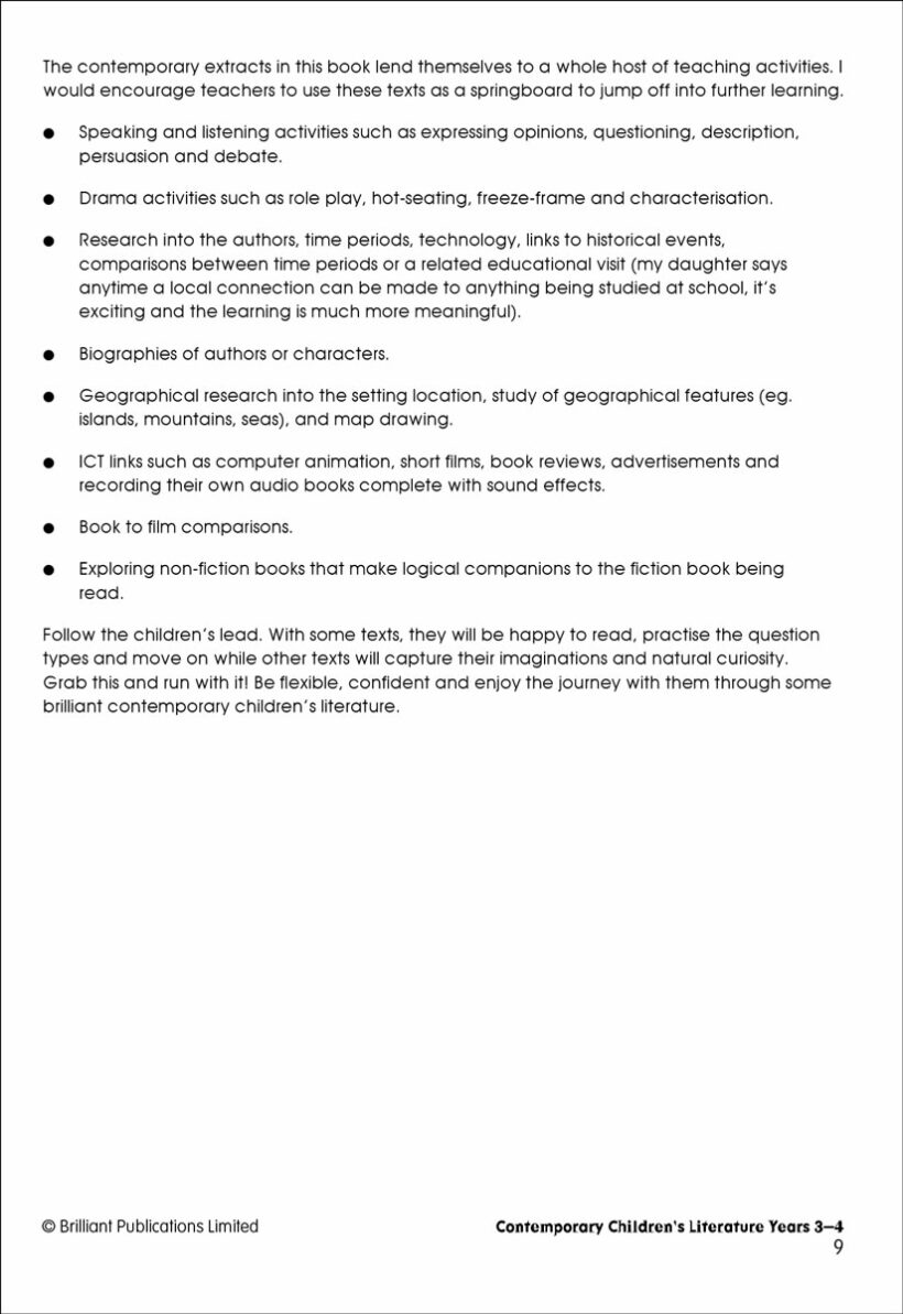 Excellent book! The texts have been carefully selected by the author, who is clearly very knowledgable about children’s literature: they are fresh, engaging and representative of a variety of contexts. The questions which accompany the texts are pitched at the right level to develop and challenge pupils’ reading skills. A truly valuable resource for every classroom.