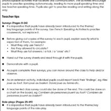 French Speaking Activities: Fun Ways to Get Pupils to Talk to Each Other in French contains 60 time-saving photocopiable activities designed to get Key Stage 2 and Key Stage 3 pupils having meaningful conversations with each other. Activities range from role plays and surveys to quizzes, presentations and games.