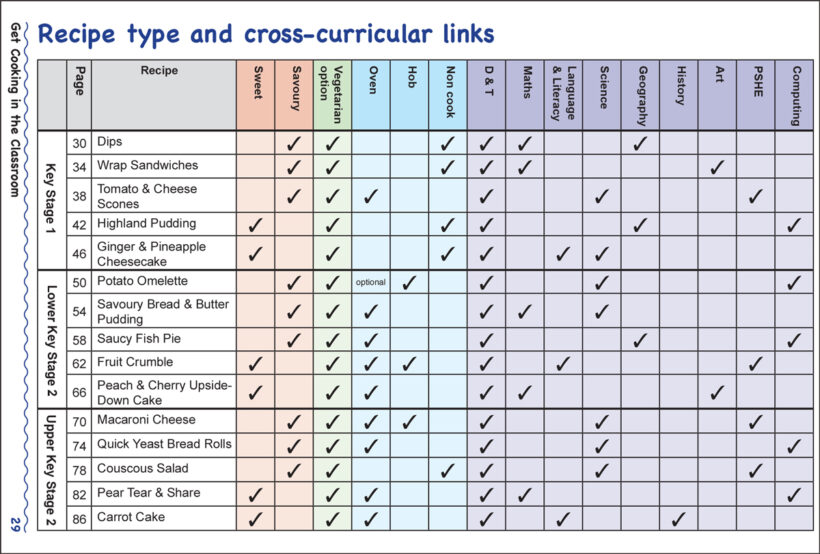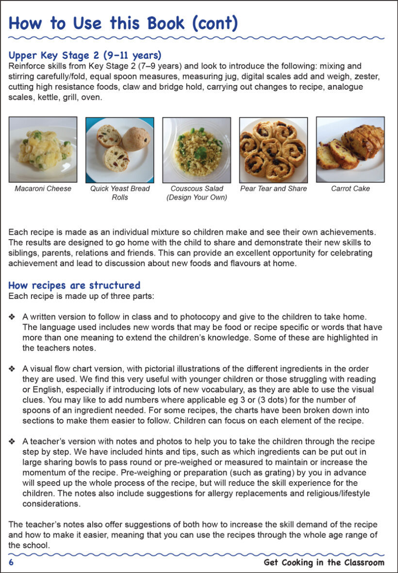 The teacherʼs notes also offer suggestions of both how to increase the skill demand of the recipe and how to make it easier, meaning that you can use the recipes through the whole age range of the school.