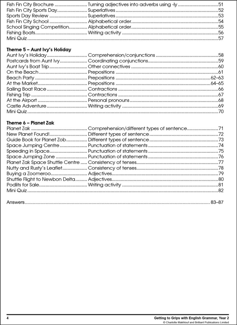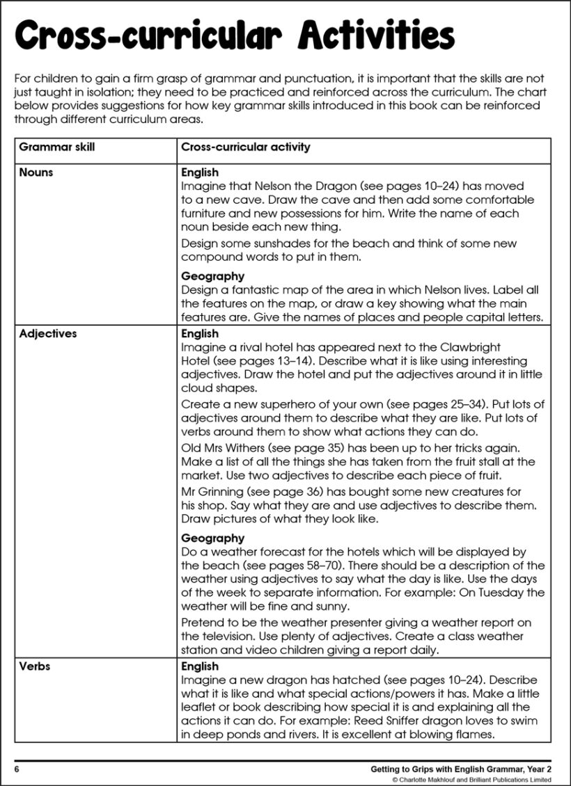 Written by Charlotte Makhlouf, the best-selling author of the Brilliant Activities for Reading Comprehension series, Getting to Grips with English Grammar, Year 2 introduces pupils to grammar and punctuation through fun, engaging themes, such as Nelson the Dragon and Trip to Planet Zak.