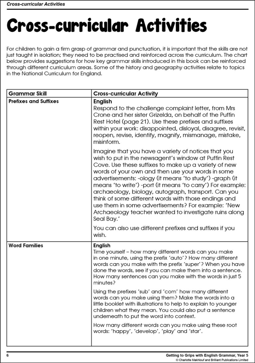 Written by Charlotte Makhlouf, the best-selling author of the Brilliant Activities for Reading Comprehension series, Getting to Grips with English Grammar, Year 5 introduces pupils to grammar and punctuation through fun, engaging themes, such as The Sky Walkway and Puffin Rest Cove.