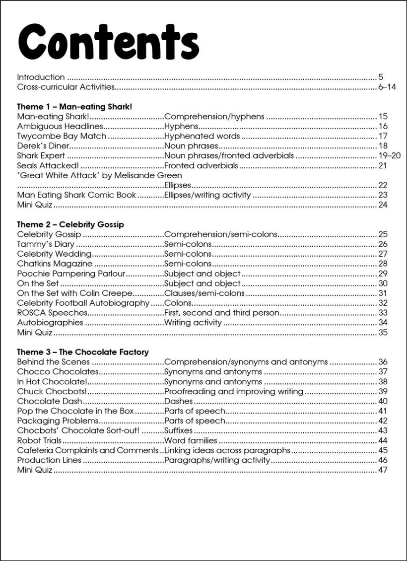 Written by Charlotte Makhlouf, the best-selling author of the Brilliant Activities for Reading Comprehension series, Getting to Grips with English Grammar, Year 6 introduces pupils to grammar and punctuation through fun, engaging themes, such as Behind the Scenes at the Chocolate Factory and The Haunted Lighthouse.
