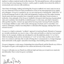- Breaks language down into manageable chunks and presents them in a methodical manner enabling pupils to feel that they can converse in French.