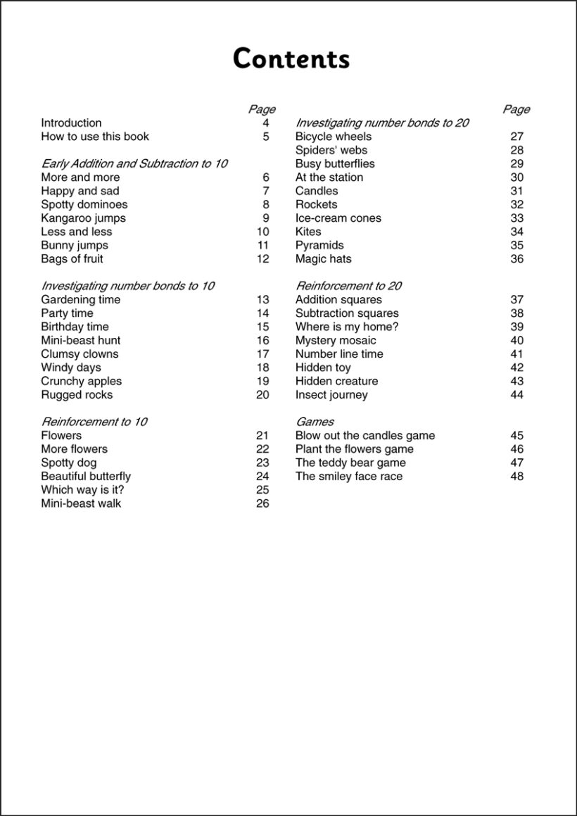 How to Sparkle at Addition and Subtraction to 20 contains 40 photocopiable illustrated worksheets for use in Key Stage 1 (KS1). These high interest activities will help develop your pupils’ addition and subtraction skills.