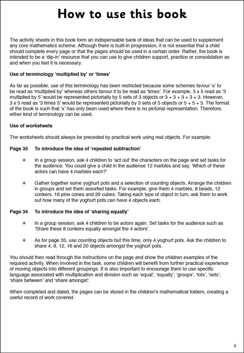 How to Sparkle at Beginning Multiplication and Division contains 40 stimulating activity sheets and games that will help Key Stage 1 (KS1) children to develop a thorough understanding of early multiplication and division.