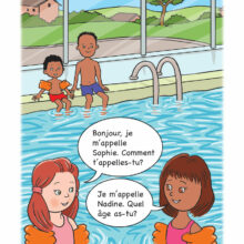 Luc and Sophie are at the swimming pool. Sophie introduces herself to Nadine and they find out how old they both are. Luc tries to join in the conversation. What does Sophie do?