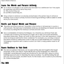 Drama and movement provide the ideal way to teach a foreign language. By actively involving the body, learning comes more naturally and it is easier to retain what has been learned. The simple routines in this book and DVD set combine movements with repetition of important phrases, making learning languages easy and enjoyable. You will love the activities in Jouez, Dansez et Apprenez le Français.