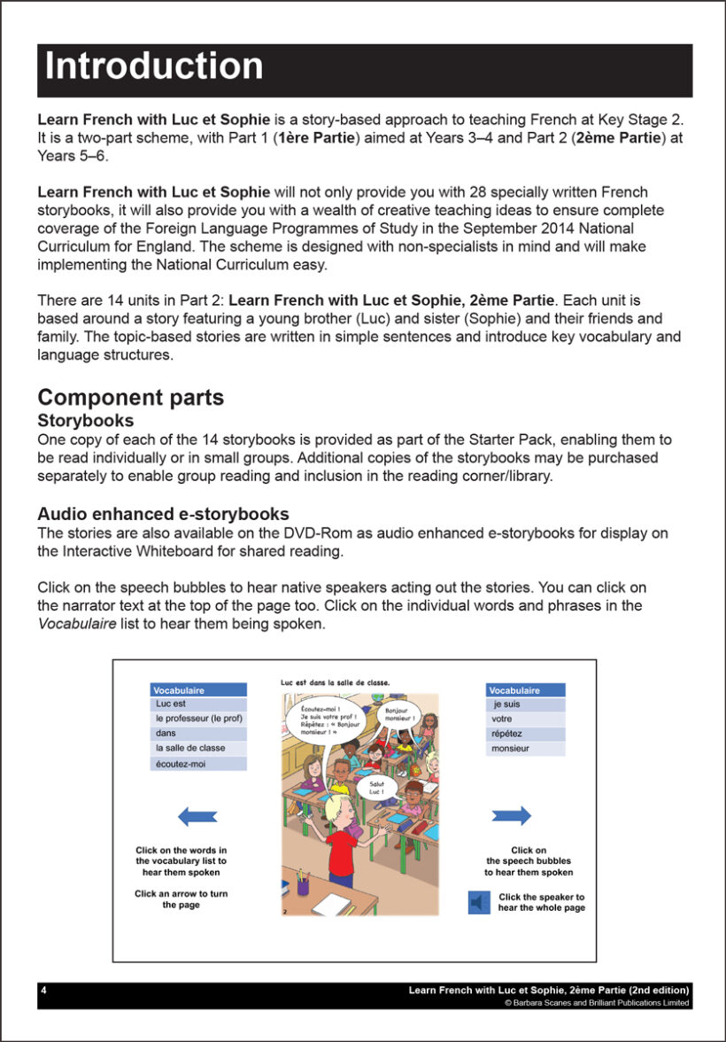 Learn French with Luc et Sophie, 2ème Partie will not only provide you with 14 specially written French storybooks, it will also provide you with a wealth of creative teaching ideas to ensure coverage of the Foreign language Programmes of Study in the September 2014 National Curriculum for England in Years 5 and 6. This resource also covers all aspects of the Scottish ‘Curriculum for Excellence: Modern Languages – Experience and Outcomes’.