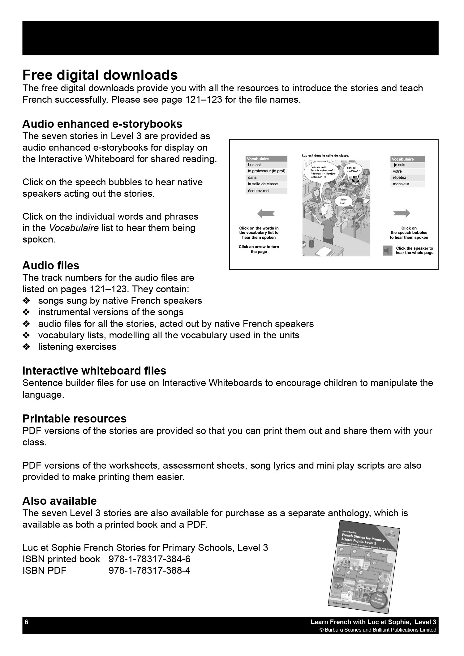 This book and accompanying resources provide everything you need to teach French in Year 5. However, to enable your pupils to better enjoy reading the stories on their own or in groups, an anthology of the stories is available for purchase: Luc et Sophie French Stories for Primary School Pupils, Level 3.