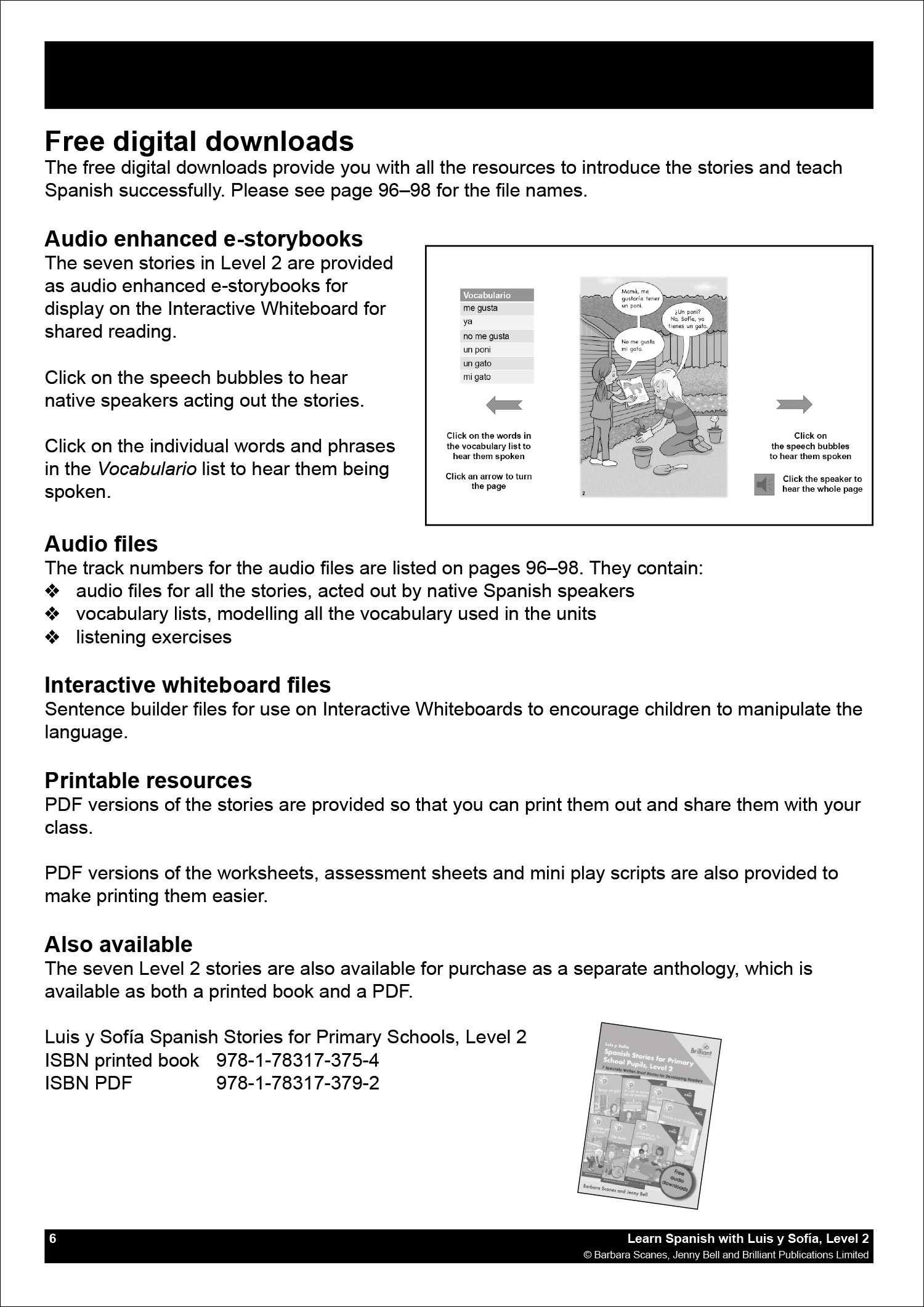 This book and accompanying resources provide everything you need to teach Spanish in Year 4. However, to enable your pupils to better enjoy reading the stories on their own or in groups, an anthology of the stories is available for purchase: Luis y Sofía Spanish Stories for Primary School Pupils, Level 2.