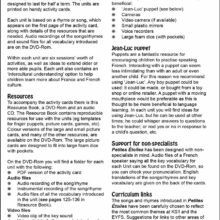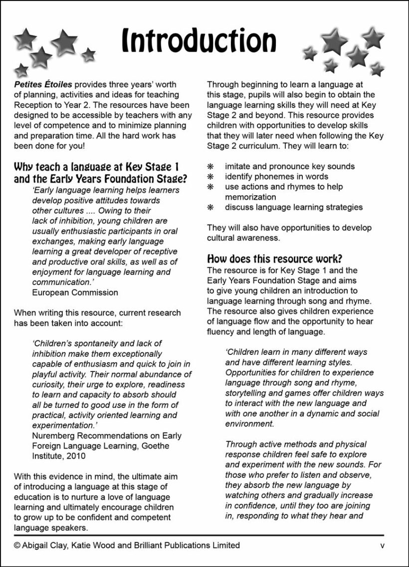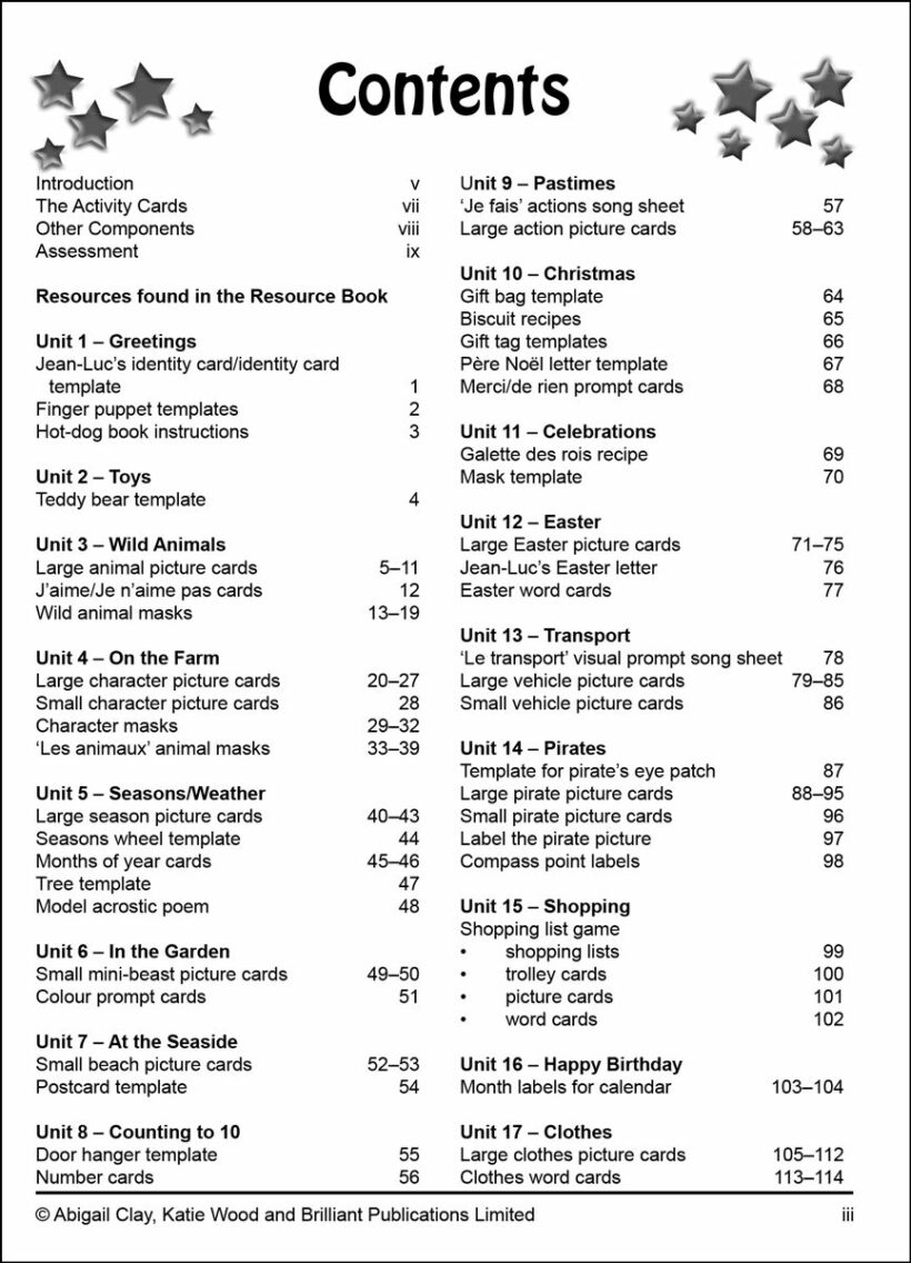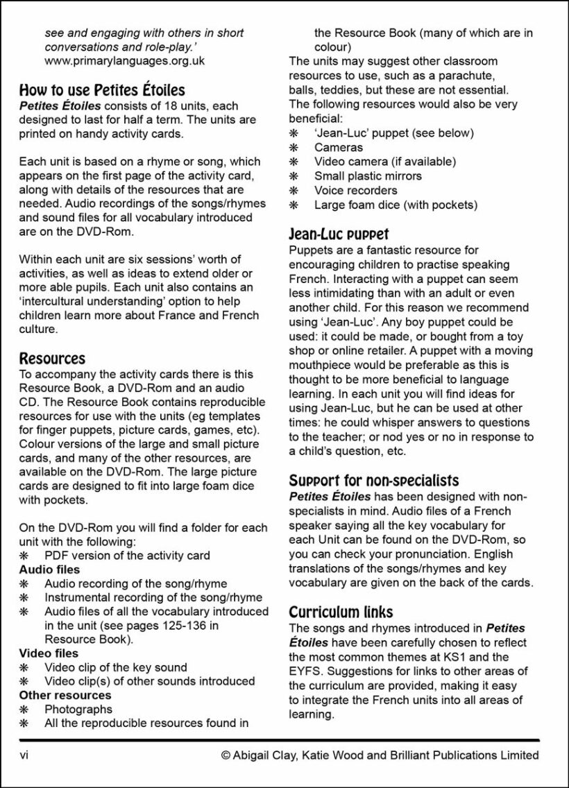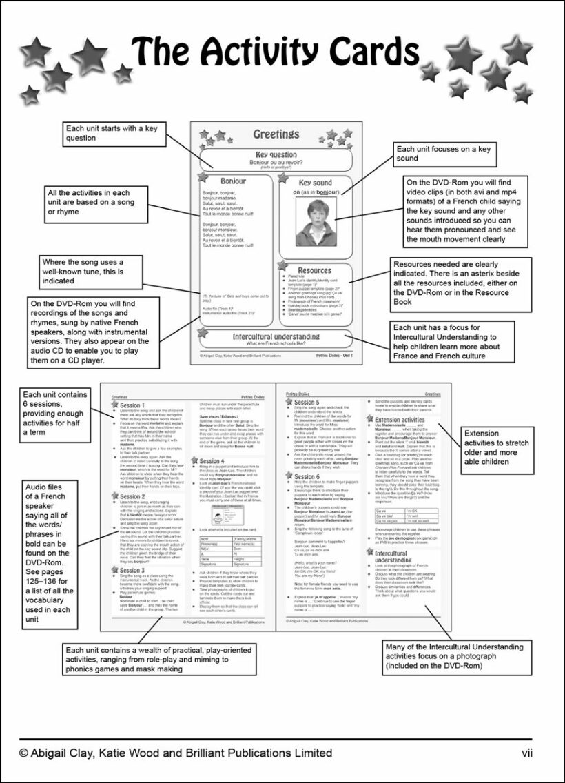 Each unit in Petites Étoiles focuses on a rhyme or song and contains sufficient activities for at least half a term.