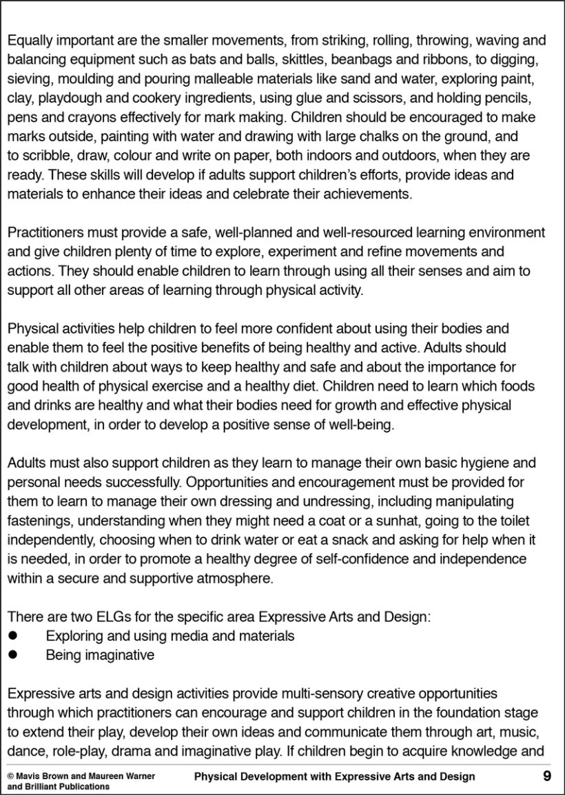 The activities in Physical Development with Expressive Arts & Design encourage children to: