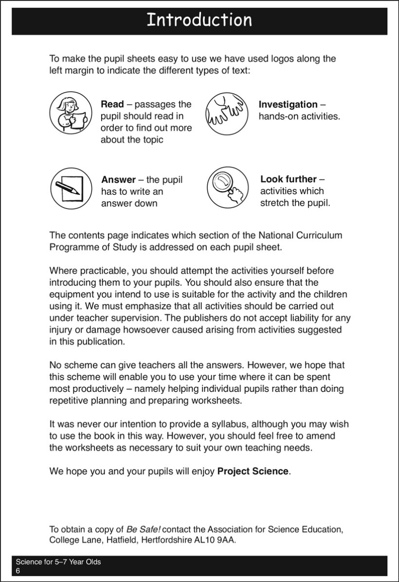 Science for 5-7 Year Olds contains over 70 attractively laid out photocopiable worksheets, written to match the National Curriculum and the schemes of work for Key Stage 1 (KS1). The accompanying teachers’ notes provide background information, answers to the pupil pages, resources needed and teaching/safety notes.