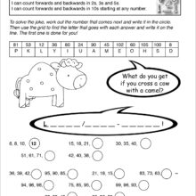 As pupils solve problems, they reveal the punchlines to light-hearted riddles — like “What do you get if you cross a cow with a camel?” (lumpy milk-shake!) — turning practice into play.
