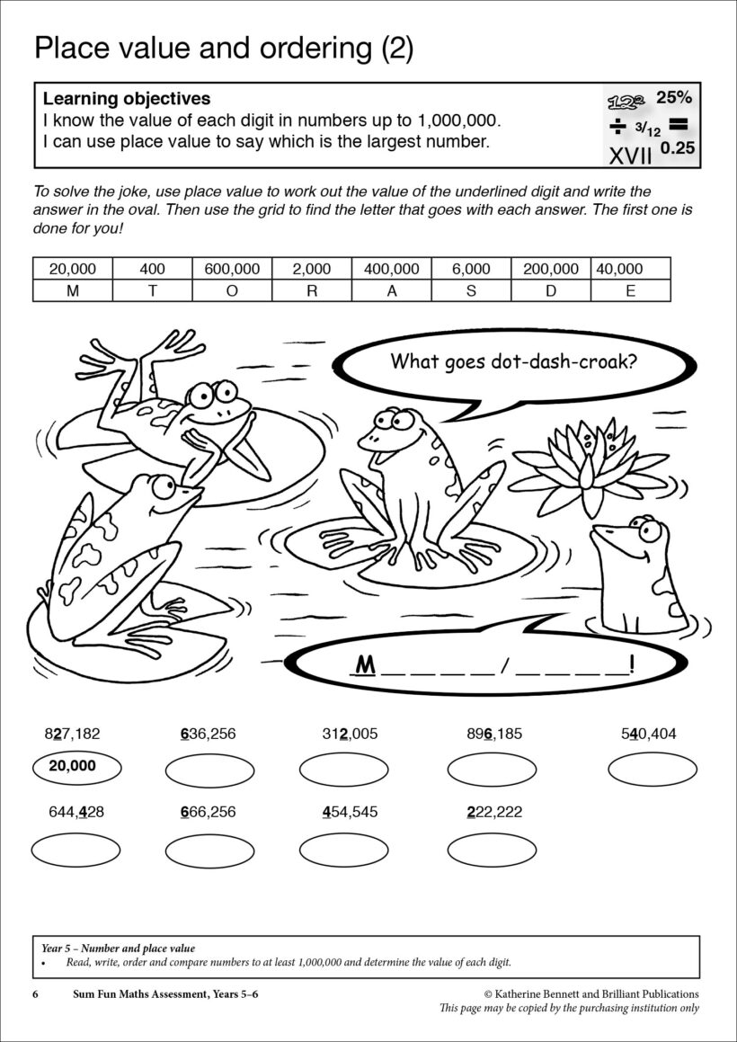 Each sheet targets a specific objective, covering number and place value, the four operations, fractions, decimals, and percentages. With several worksheets for each skill and an assessment checklist, it’s easy to keep track of pupils’ progress throughout the year.