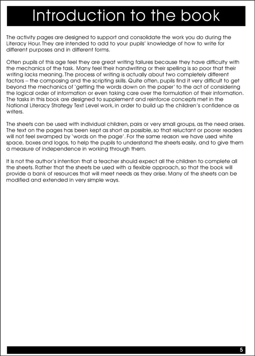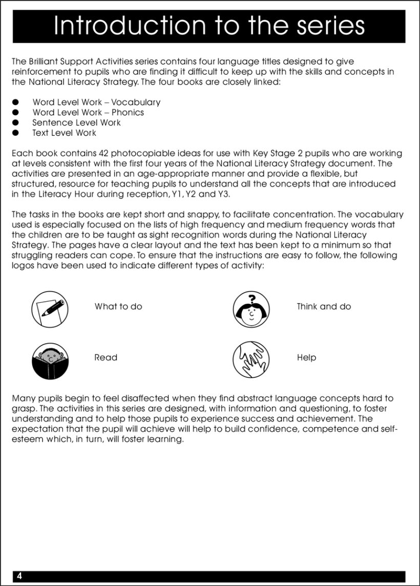 Text Level Work contains 42 photocopiable activities for Key Stage 2 (KS2) pupils who are working at levels consistent with the first four years of the National Literacy Strategy document. They introduce one concept per sheet, and provide additional practice and support for those children who are struggling to learn concepts and skills first introduced at Key Stage 1.
