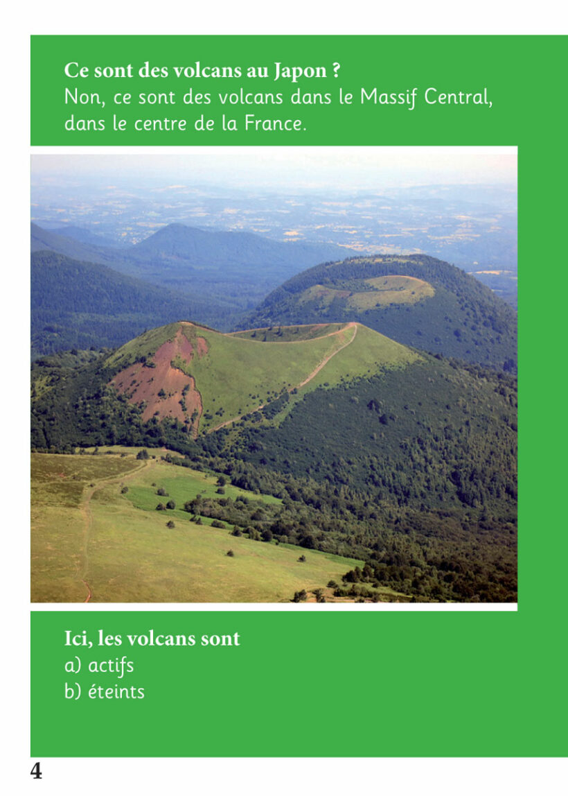 This e-book takes the form of an interactive geography quiz. Pupils learn about different geographical features of France, from mountains and volcanoes to sand dunes and Caribbean islands (you may need to explain that Guadeloupe and Martinique are overseas territories which are governed by France).