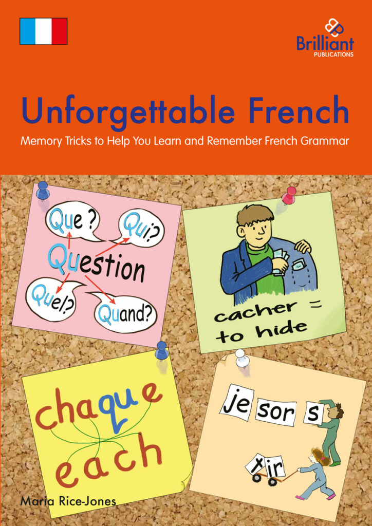 Unforgettable French uses memory tricks based on sound and idea associations to teach French and reinforce major points of French grammar, from the basics up to GCSE level. Scroll down to find out more and download ‘Try before you buy’ sample pages from the book.
