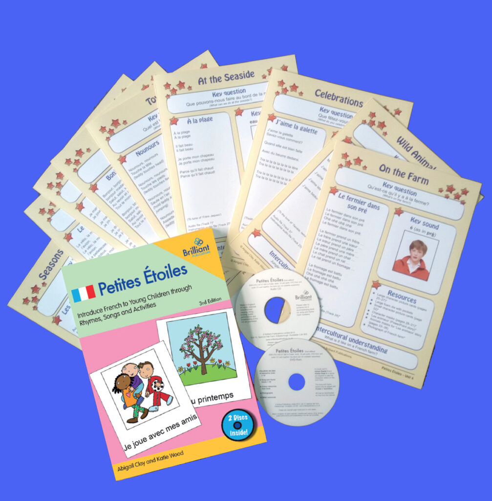 Petites Étoiles uses rhymes, songs, and play-based activities linked to 18 popular topics to introduce children in reception and Key Stage 1 to French. The clear, easy-to-use lessons plans and resources will integrate easily with your schemes of work. The files have been completely updated for this 3rd edition, to ensure compatibility with all computers. Scroll down to find out more and download ‘Try before you buy’ sample pages from the book.
