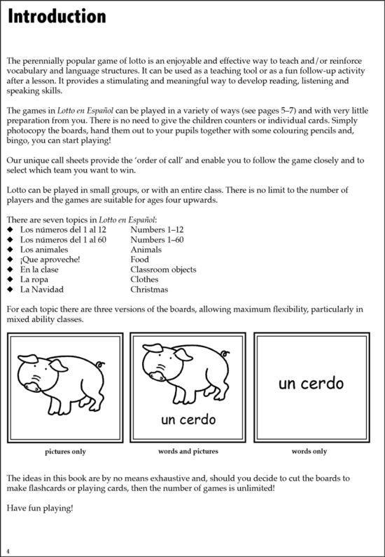 Lotto en Español – A fun way to reinforce Spanish vocabulary